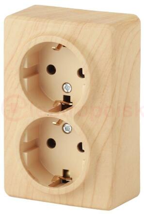 Розетка 2х2P+E Schuko, 16A-250В, ОУ, Эра Эксперт, сосна, 11-2205-11